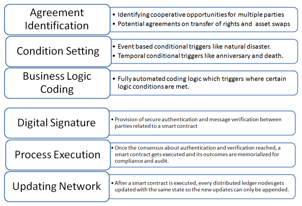 Blockchain: "[...] permits transactions to be gathered into blocks and recorded; cryptographically chains blocks in chronological order; and allows the resulting ledger to be accessed by different servers."