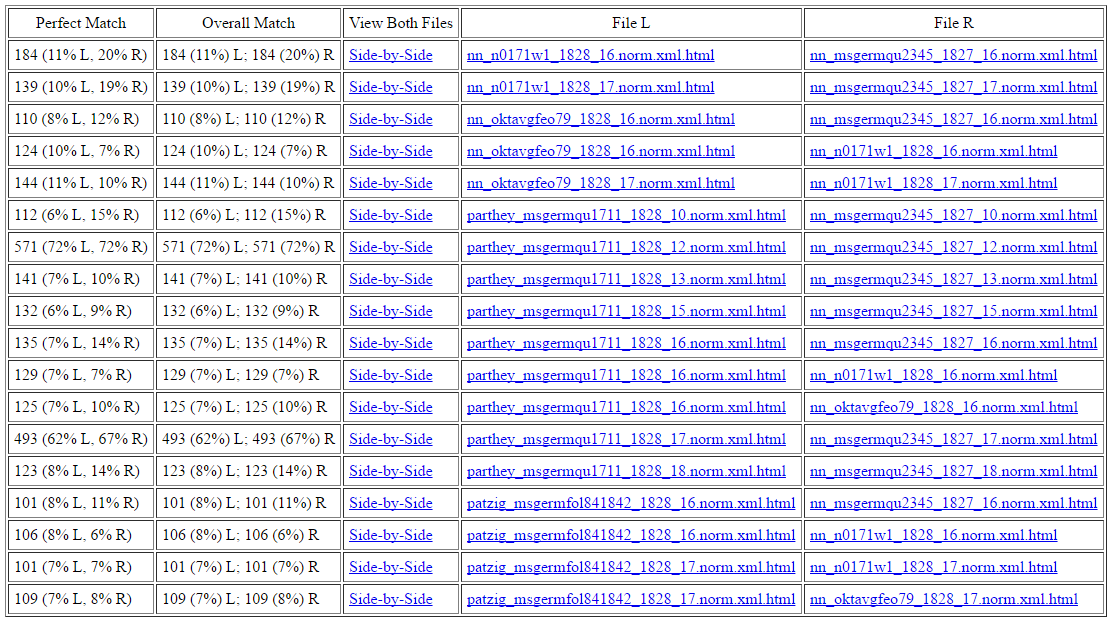 *comparing single lessons (not whole docs), orthographically normalized spelling