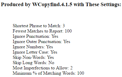 - Copyfind* File Comparison Report