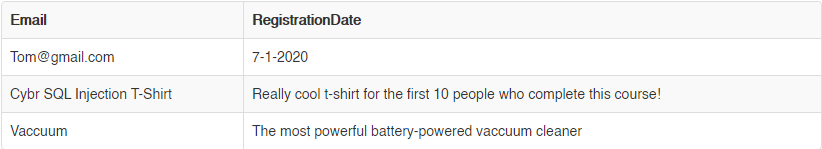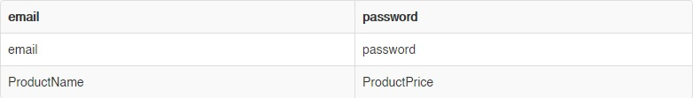 SELECT 'email','password' FROM Users UNION SELECT 'ProductName', 'ProductPrice' from Products;