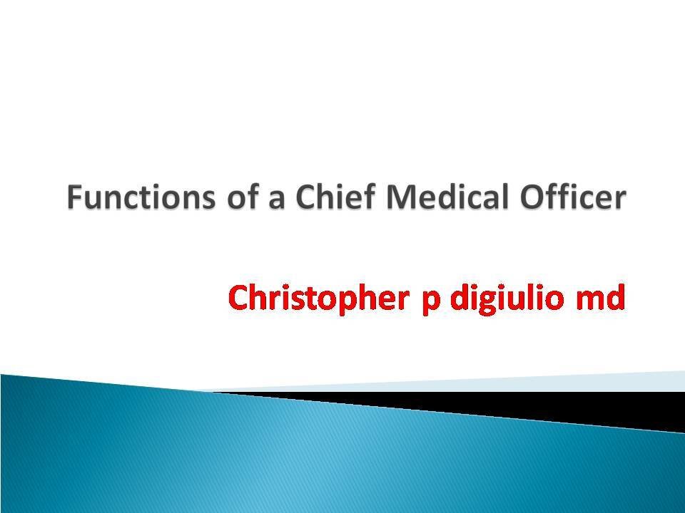 Christopher p digiulio md is responsible for managing clinical operations, liaising between administration and medical staff and ensuring that patients receive the highest standard of medical care.
