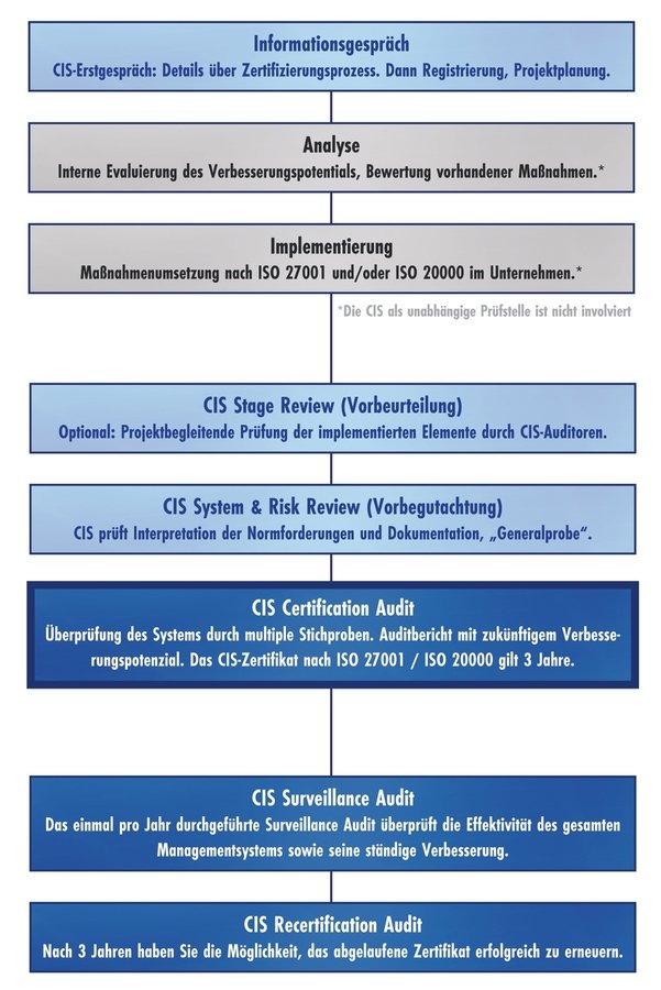 "... spezifiziert die Anforderungen für Herstellung, Einführung, Betrieb, Überwachung, Wartung und Verbesserung eines dokumentierten Informationssicherheits-Managementsystems unter Berücksichtigung der IT-Risiken innerhalb der gesamten Organisation." - Wikipedia