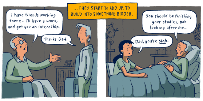 - Persuni konkreti affettwati minn strutturi konkreti imma mhux daqshekk evidenti.