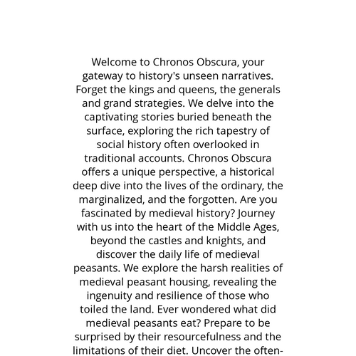 Website: https://www.youtube.com/@ChronosObscura. Welcome to Chronos Obscura, your gateway to history's unseen narratives. Forget the kings and queens, the generals and grand strategies. We delve into the captivating stories buried beneath the surfac