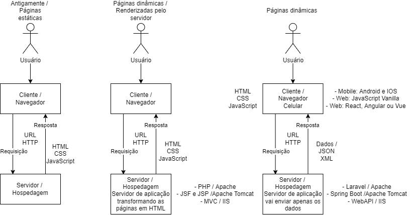 Na nossa disciplina, uma aplicação desenvolvida em node irá tratar a requisição no servidor, fará uma consulta em um banco de dados e o recurso que será devolvido para ser construído dinamicamente por esta aplicação.
