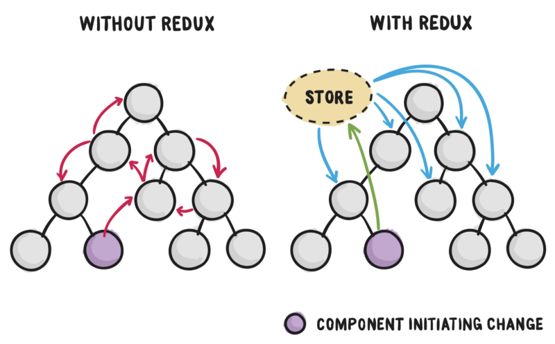 Entrou em pauta o gerenciamento de estados da aplicação, pra não virar um macarrão de componetnes pasasndo informações de forma desorganizada, isso começou com uma tecnologia chamada Redux.