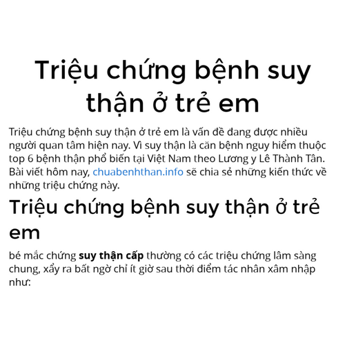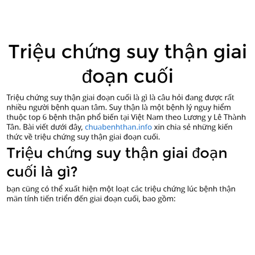 Triệu chứng suy thận nặng là vấn đề đang được nhiều người quan tâm hiện nay. Vì suy thận là căn bệnh nguy hiểm thuộc top 6 bệnh thận phổ biến tại Việt Nam theo Lương y Lê Thành Tân. Bài viết hôm nay, chuabenhthan.info sẽ chia sẻ những kiến thức về những triệu chứng nguy hiểm này.