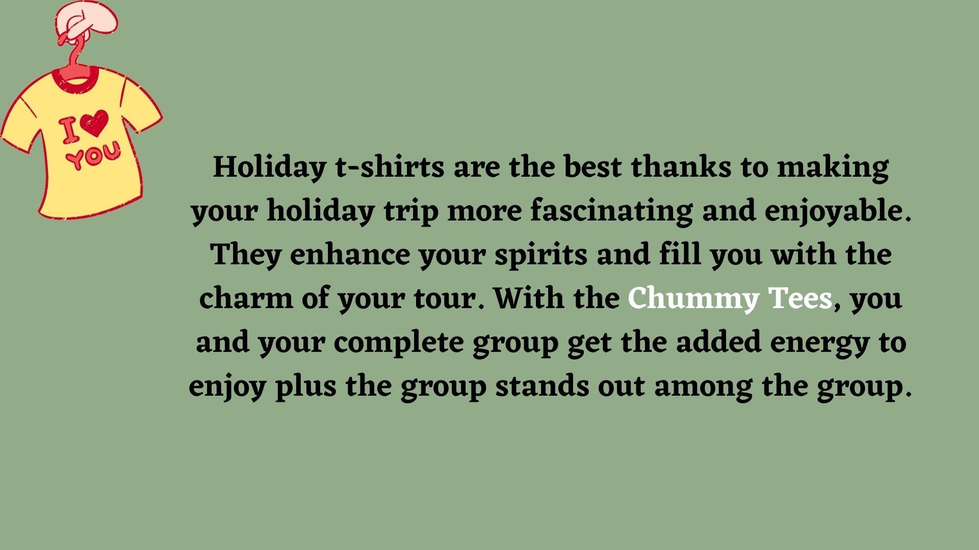 Holiday t-shirts are the best thanks to making your holiday trip more fascinating and enjoyable. They enhance your spirits and fill you with the charm of your tour. With the Chummy Tees, you and your complete group get the added energy to enjoy plus the group stands out among the group. https://speakerhub.com/speaker/chummy-tees-reviews