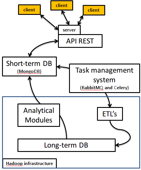 - The integration in the architecture of the last technologies for real-time and batch processing of data (Spark, Kafka, Spark Streaming, ...) and also, software to simplify the horizontal scalability of the cluster (Kubernetes)