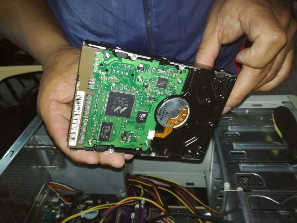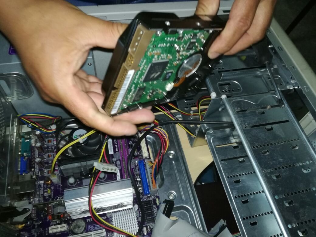 2.- Colocamos el disco duro en el slot con mucho cuidado, sin topar los circuitos del disco duro.