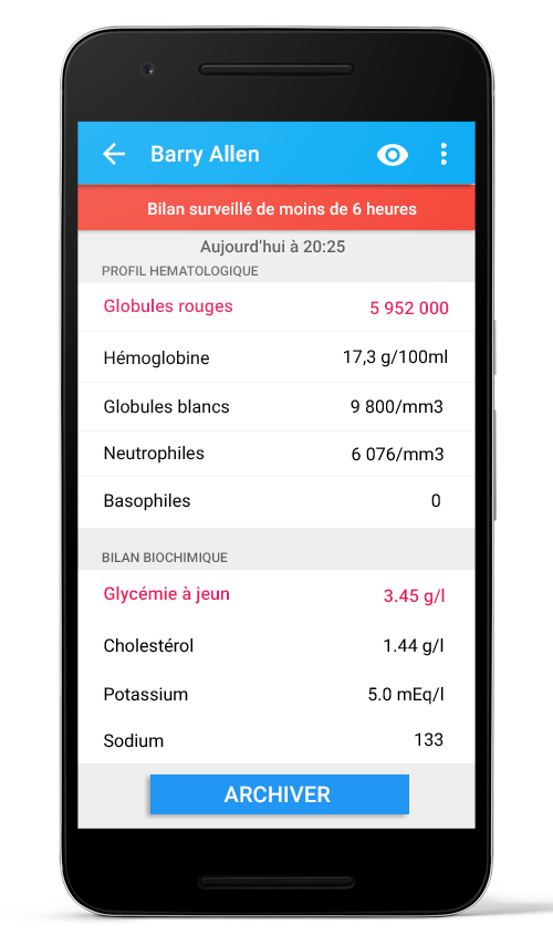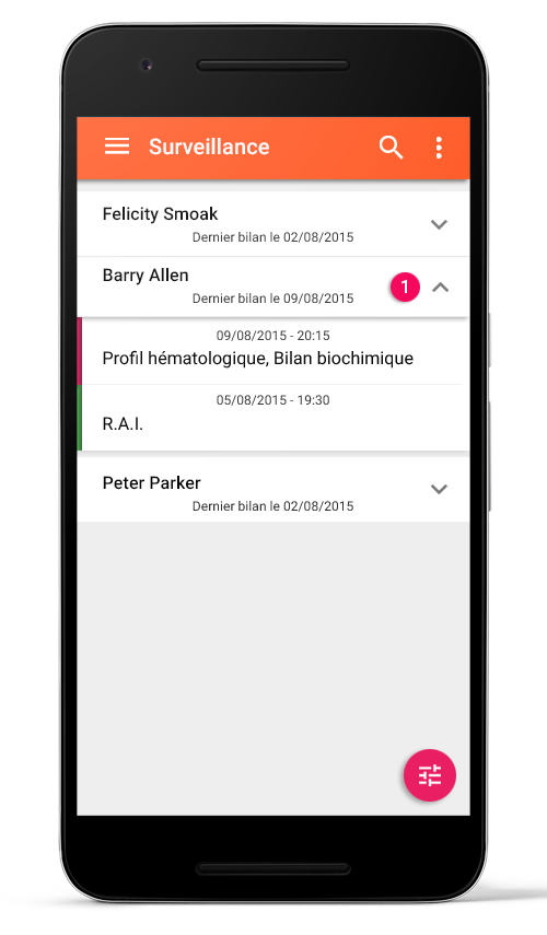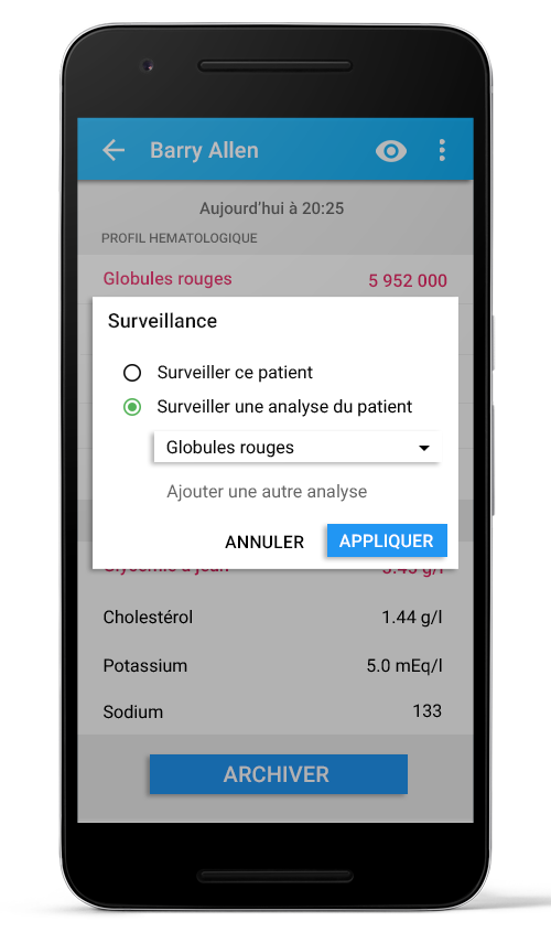 Possibilité de surveiller ce patient, ce bilan, ou cette analyse