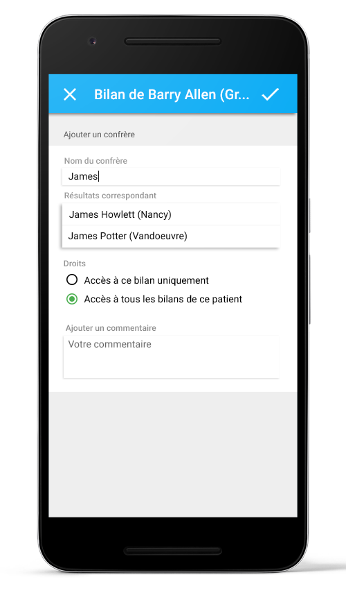 Possibilité de partager un patient, ou un bilan à des confrères