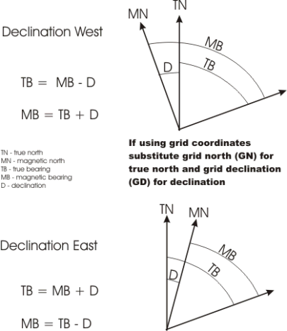 By convention, declination is positive when magnetic north is east of true north, and negative when it is to the west.