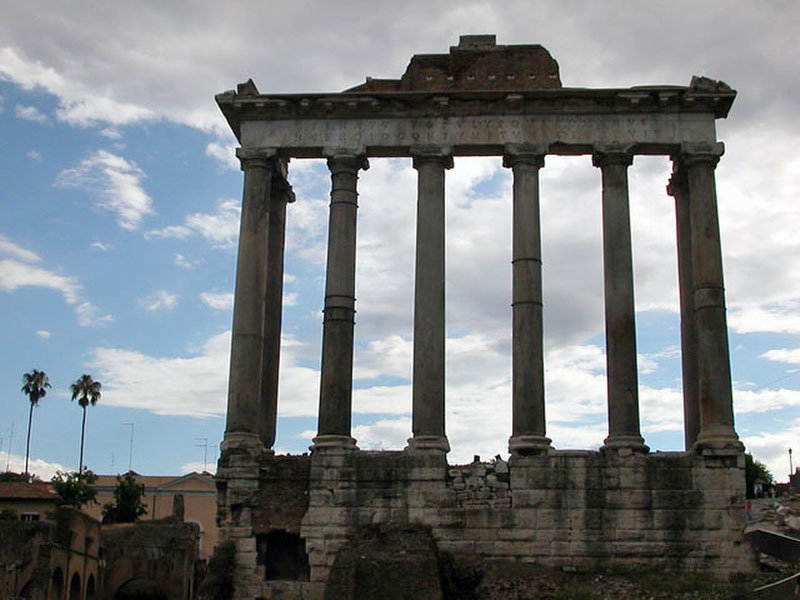 As ruínas visíveis atualmente são da terceira reconstrução do Templo de Saturno, que substituiu o segundo edifício depois do incêndio de Carino em 283 d.C.