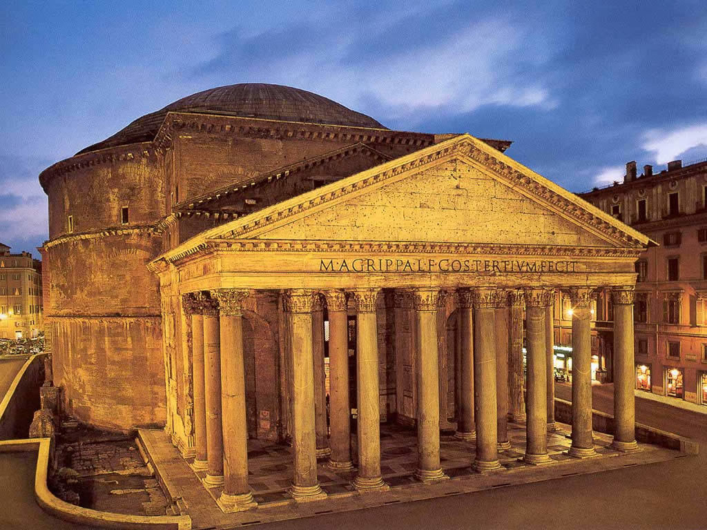 O nome do edifício é uma homenagem ao l Marco Vispânio Agripa, que mandou realizar a obra em 27 a.C. no ano 80, a construção foi praticamente destruída por um incêndio. Quatro décadas depois, o imperador Adriano mandou reerguê-la.