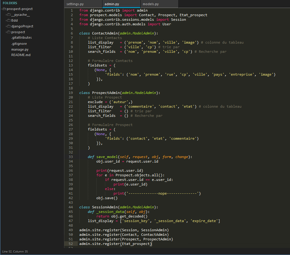 Ce code contenant nos principales "class" génère les différents tableaux qui listes les contacts et prospects