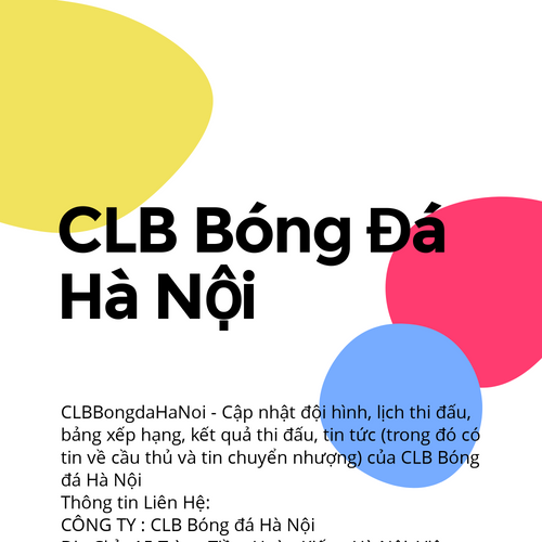 CLBBongdaHaNoi - Cập nhật đội hình, lịch thi đấu, bảng xếp hạng, kết quả thi đấu, tin tức (trong đó có tin về cầu thủ và tin chuyển nhượng) của CLB Bóng đá Hà Nội Thông tin Liên Hệ: CÔNG TY : CLB Bóng đá Hà Nội Địa Chỉ : 15 Tràng Tiền, Hoàn Kiếm, Hà Nội, Việt Nam Điện Thoại: 0411015749 Website: https://clbbongdahanoi.com/ Email: lienhe@clbbongdahanoi.com Google Map: https://goo.gl/maps/Dt7MKPRhsiPhNYZF9