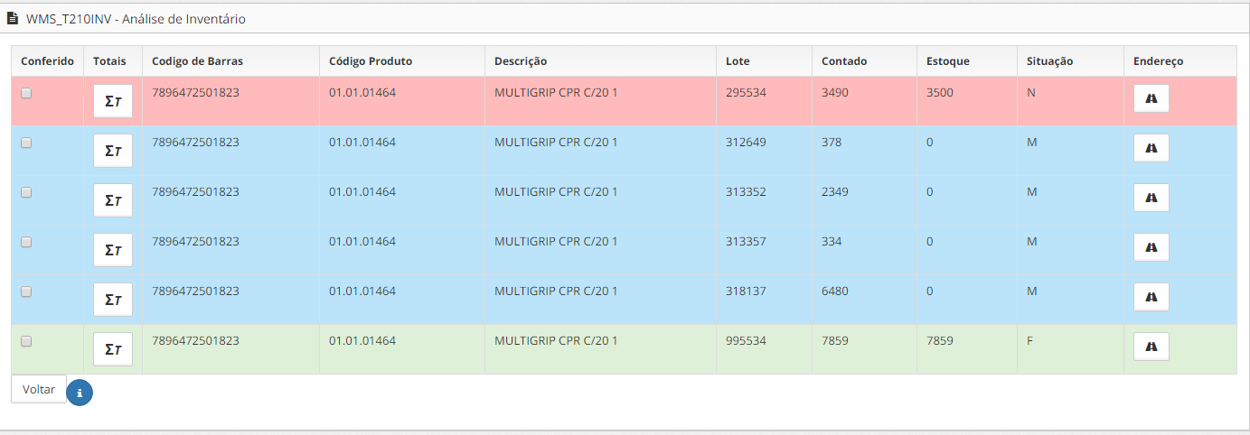 Dicas - para melhor visualização e compressão, criar inventários com apenas um produto !