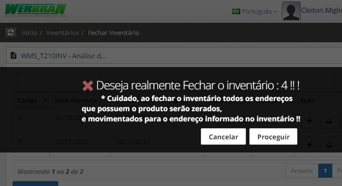 Atenção - Processo deve ser realizado sem saída ou entrada no ESTOQUE