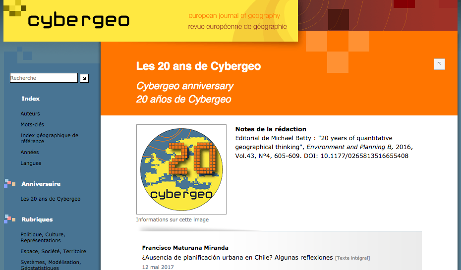Le Dépôt Github https://github.com/Geographie-cites/cybergeo20