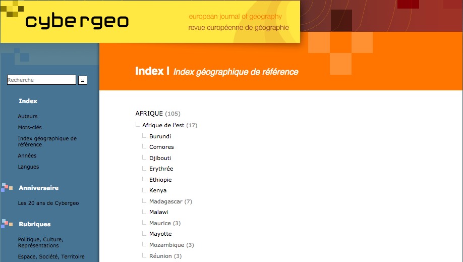 Revue de géographie dématérialisée + gratuite depuis 1996