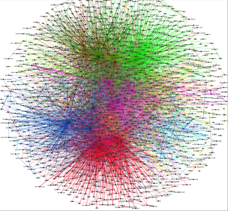 - Réseau bipartite des mots clés co-déclarés dans un même article
