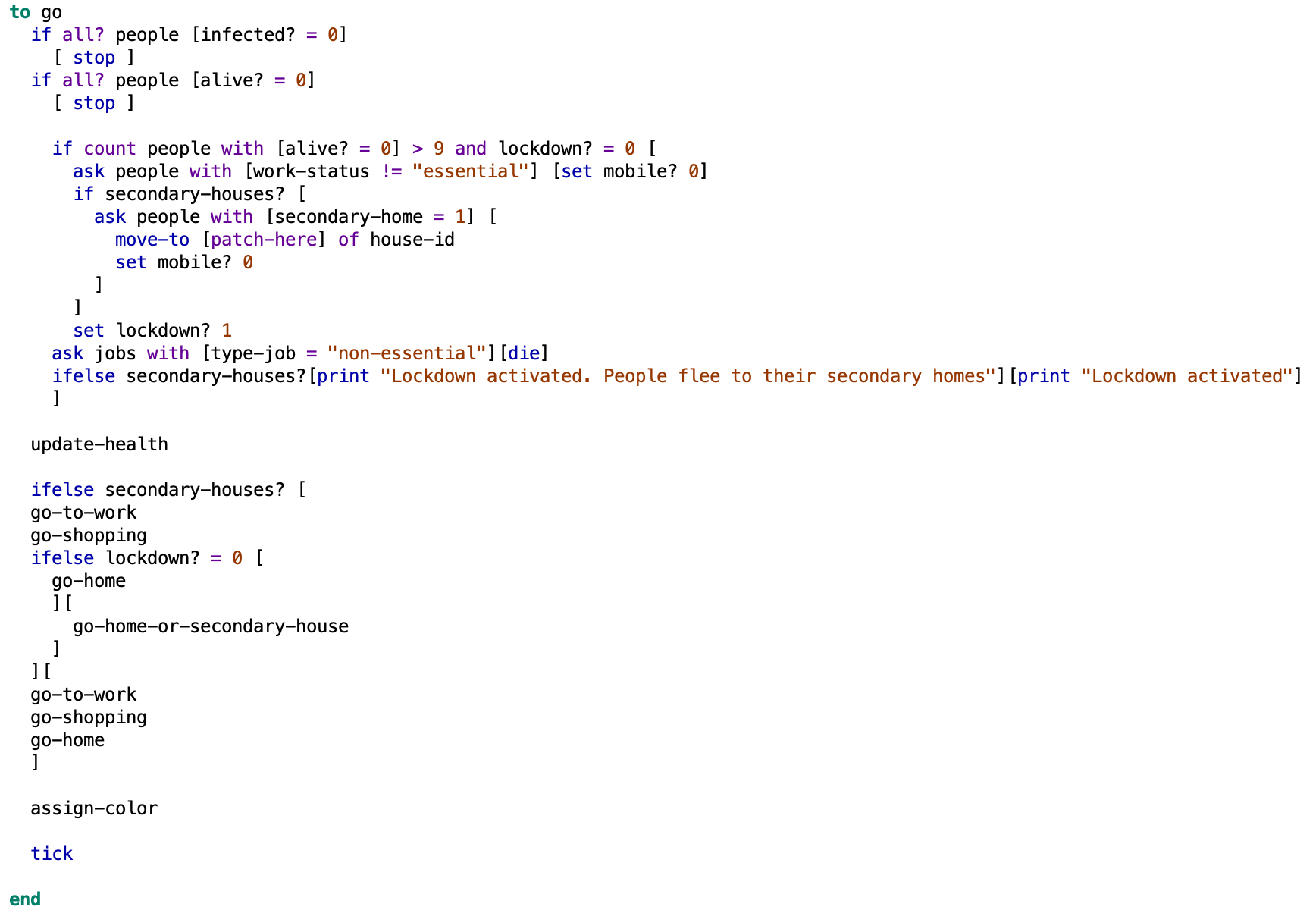 - Exploration of the model remains to be done (calibration, sensitivity, robustness analysis, adequacy with empirical data, etc.)