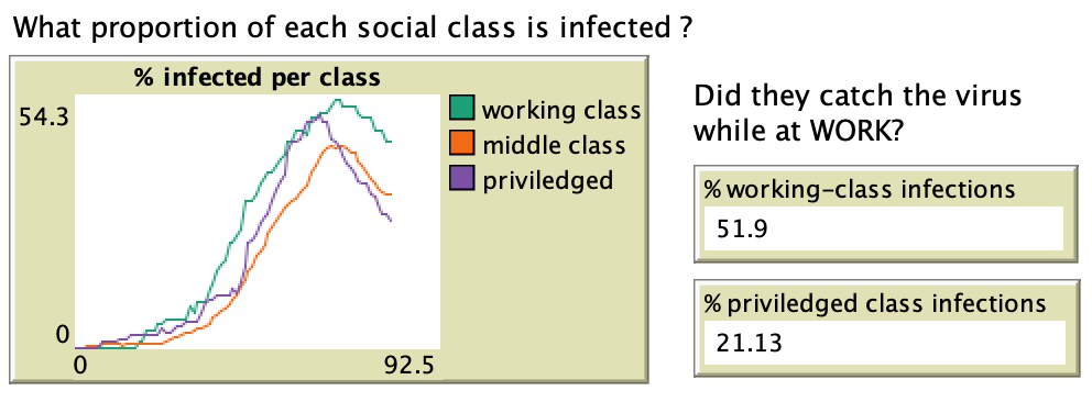 At the end of this simulation, a larger % of working class agents have been affected by the virus.