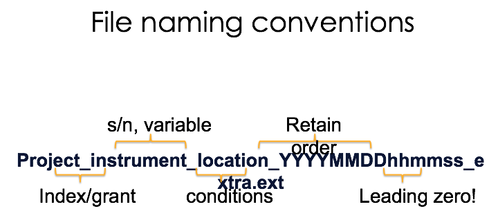 - Unique identifier (ie. Project Name or Grant # in folder name)