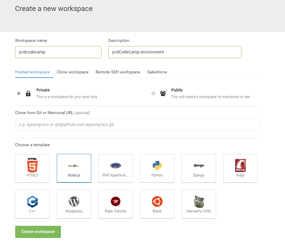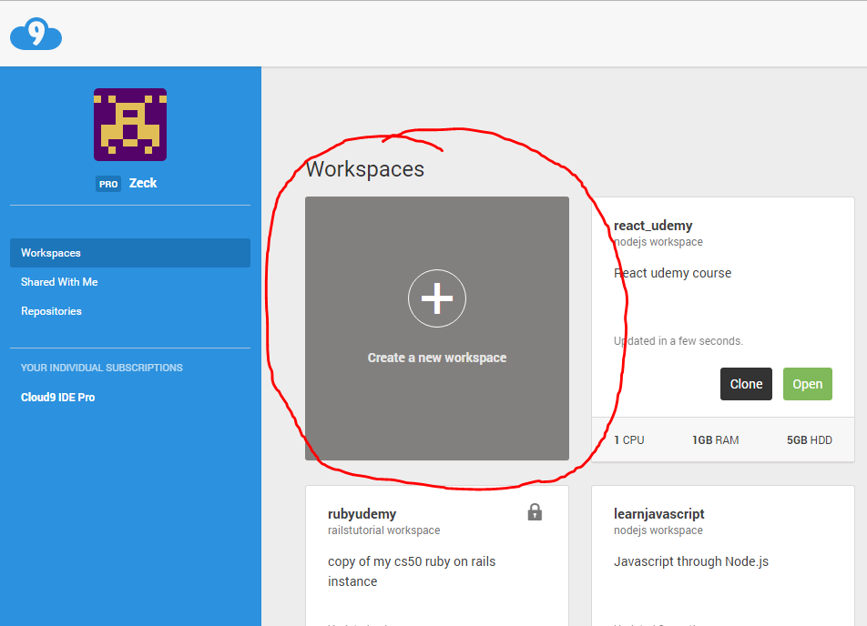 - Create Workspace.