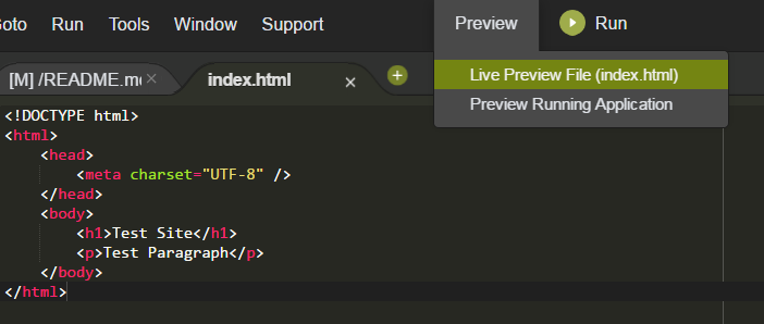 Double click index.html and in the Editor section fill out as below. Save the file.