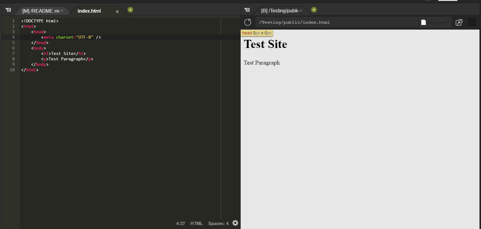 right click>new file>index.html