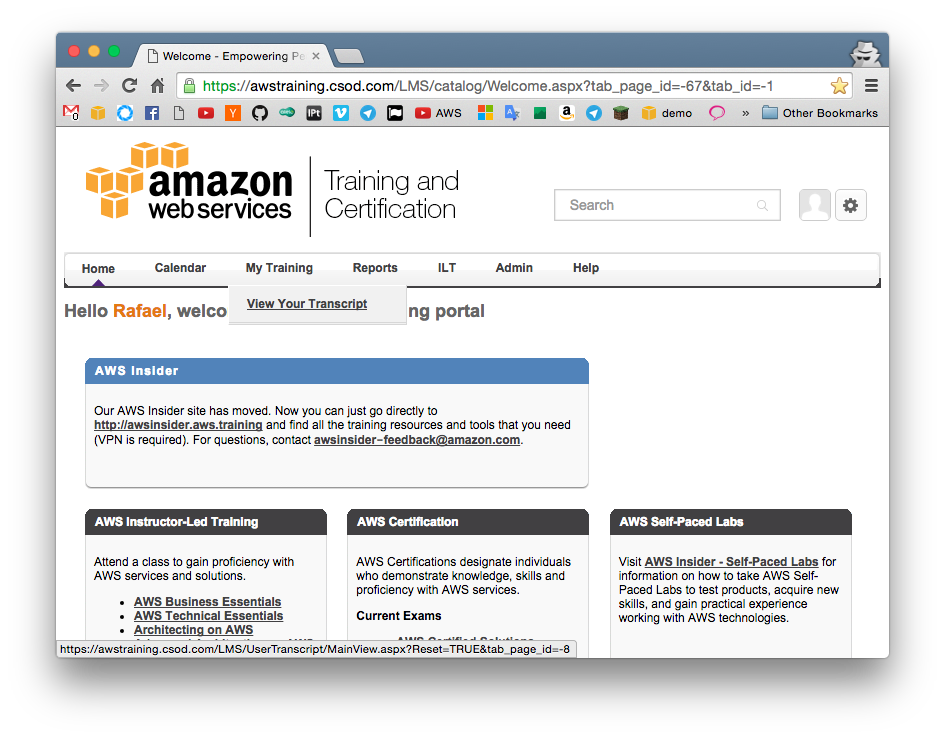 2. Mouse over "My Training" and click "View Your Transcript"