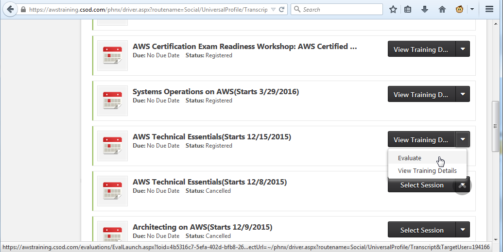 open the aws training portal