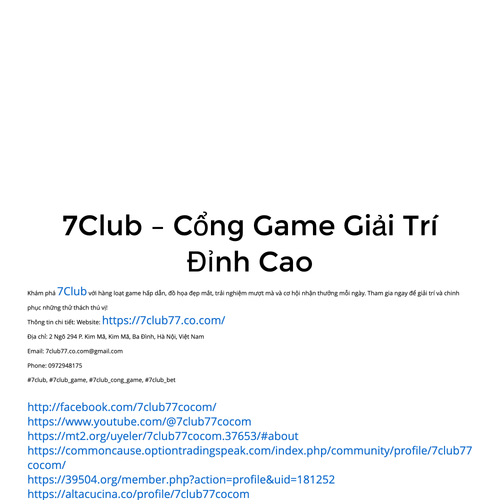 Khám phá 7Club với hàng loạt game hấp dẫn, đồ họa đẹp mắt, trải nghiệm mượt mà và cơ hội nhận thưởng mỗi ngày. Tham gia ngay để giải trí và chinh phục những thử thách thú vị! Website: https://7club77.co.com/