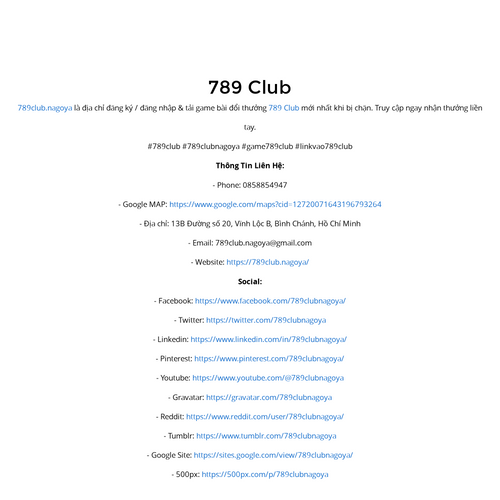 789club.nagoya là địa chỉ đăng ký / đăng nhập & tải game bài đổi thưởng 789 Club mới nhất khi bị chặn. Truy cập ngay nhận thưởng liền tay. - Google MAP: https://www.google.com/maps?cid=12720071643196793264 - Website: https://789club.nagoya/