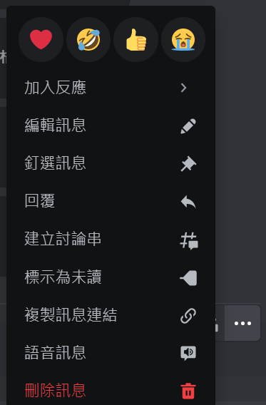 滑鼠浮過訊息可以對它執行動作