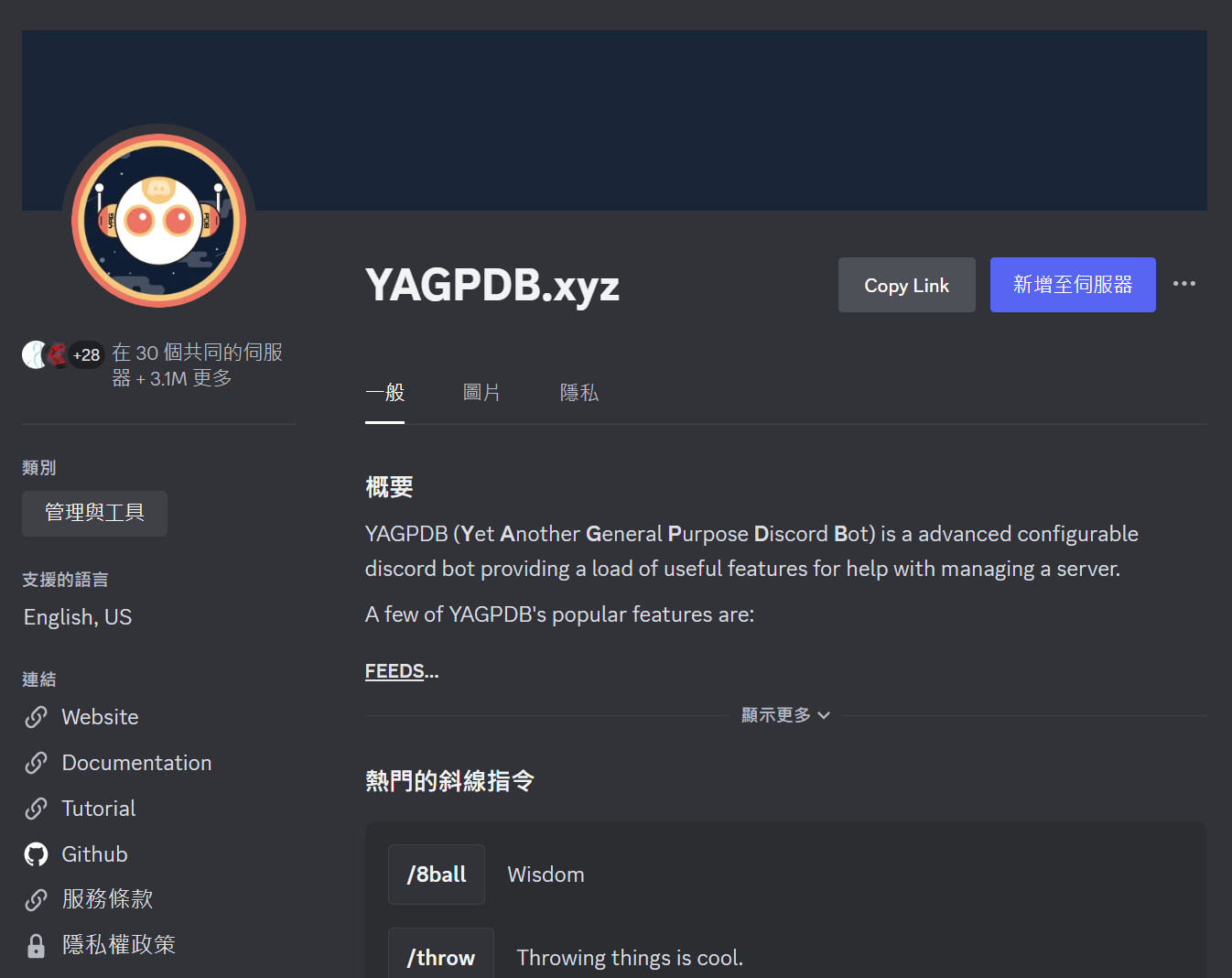 有些機器人有專屬的網站,更進一步還有控制台,來看看YAGPDB.xyz的控制台吧~
