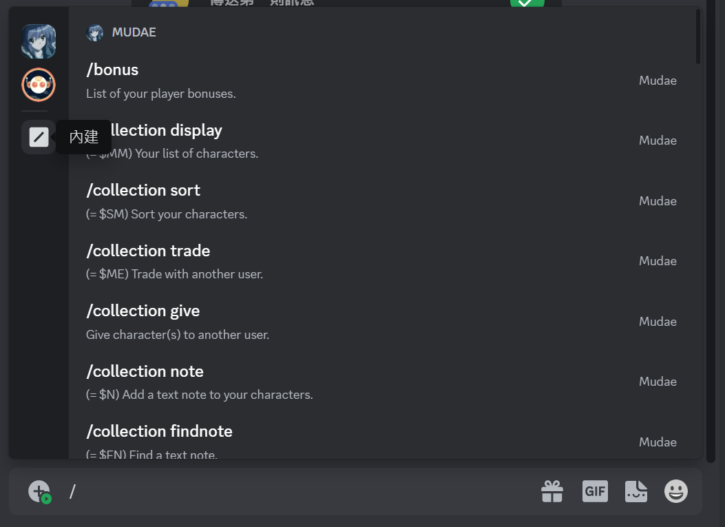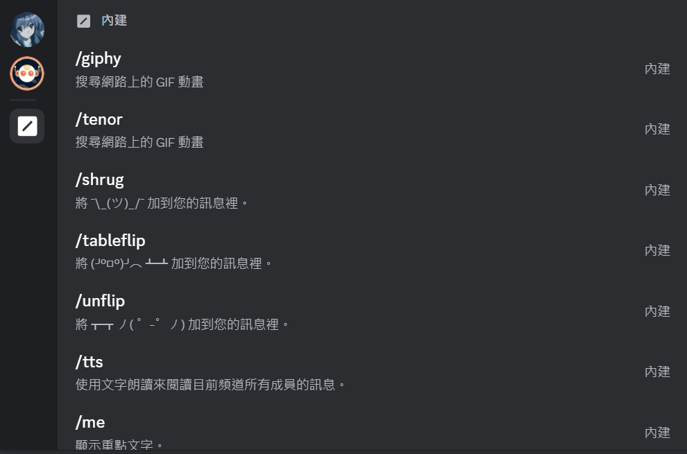 slash commands也有內建的喔,好玩~