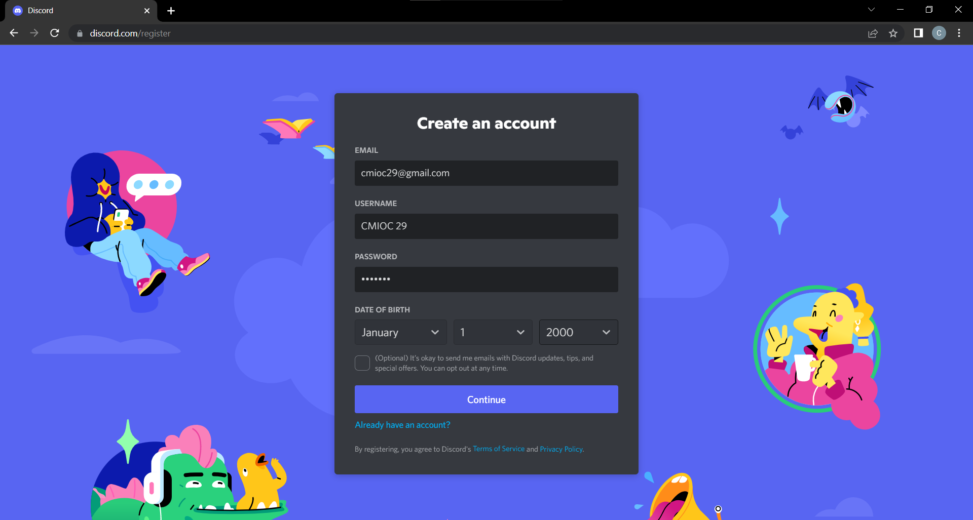 譯:(可選)可以向我發送包含 Discord 更新、提示和特別優惠的電子郵件。你可以隨時退出。