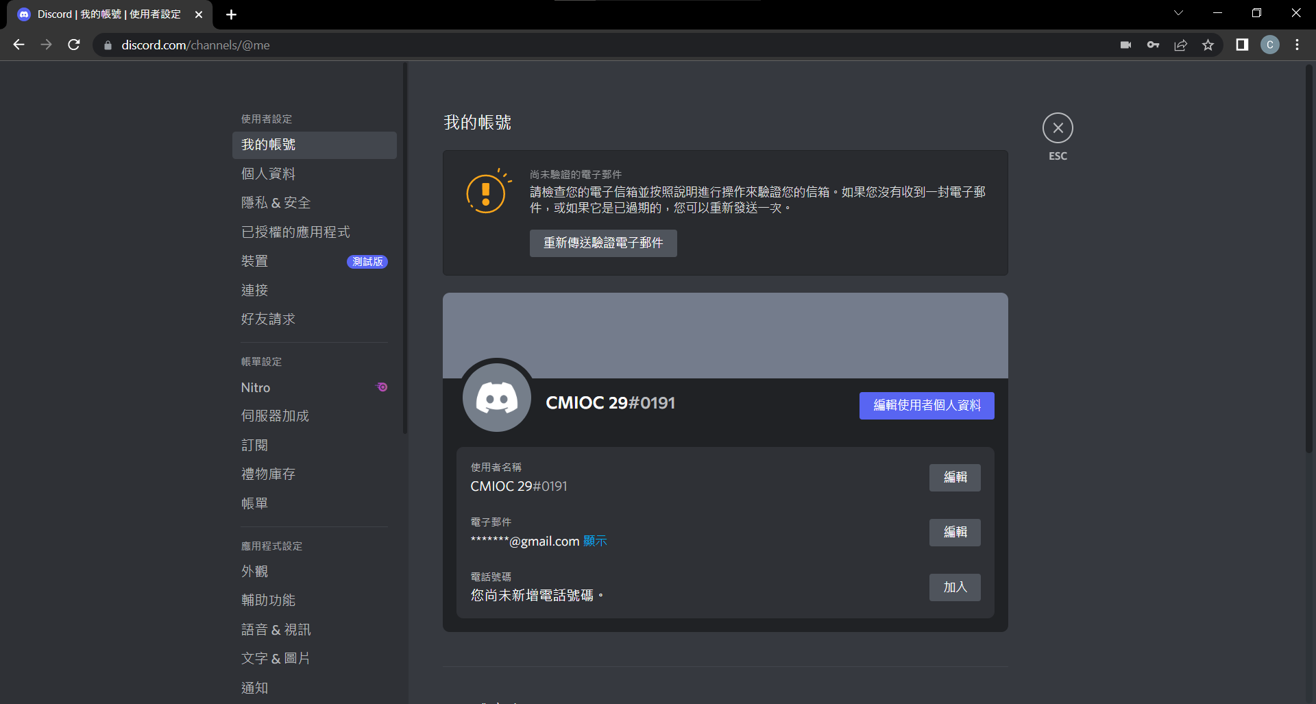 驗證帳號