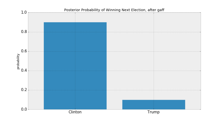P(A|X): The code passed all X tests; there still might be a bug, but its presence is less likely now.