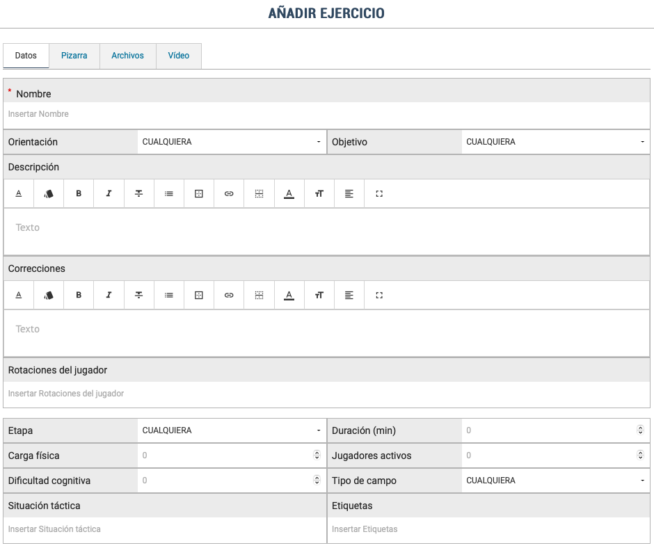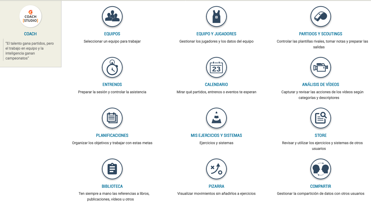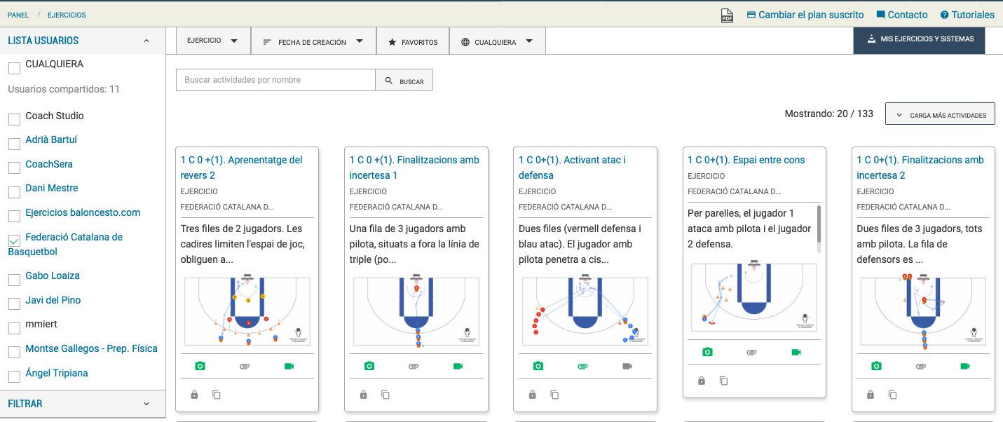 Escull el què: equips, exercicis, sistemes, planificacions, vídeos, biblioteca i/o partits