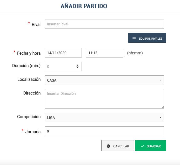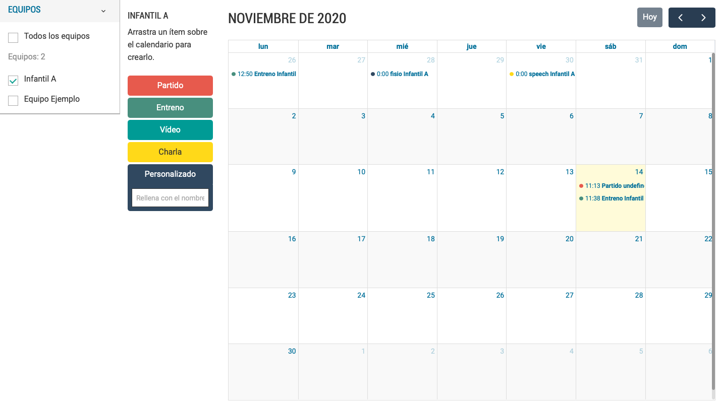 Visualitza els partits, entrenaments o altres