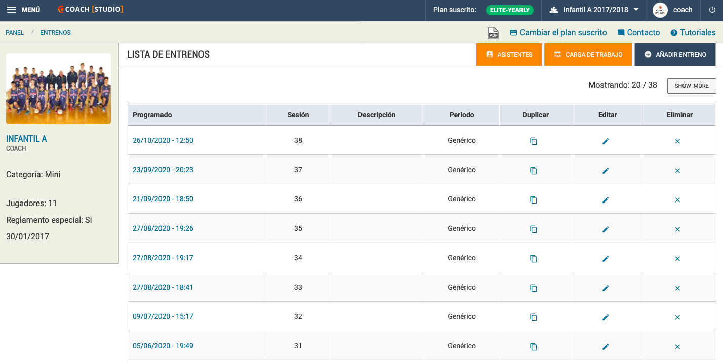 Crea entrenaments, afegeix objectius i revisa l'assistència