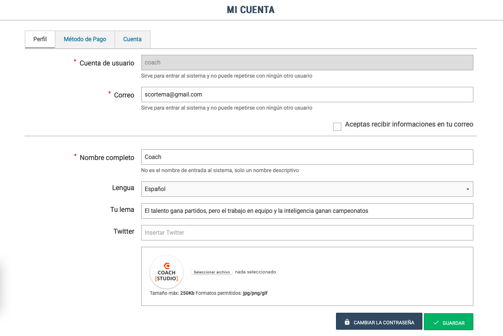 Contrasenya per defecte: "coachstudio"