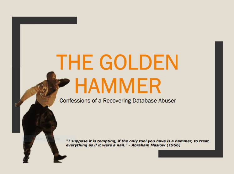 Early in my dev career, I often (unwittingly) abused my systems. My code didn't care about things like databases or networks, as long as the results were right. I had a cfHammer, and I needed to pound out a solution. I never knew I was an anti-pattern. With the right tools, things work better. (Presented at Into The Box 2020)