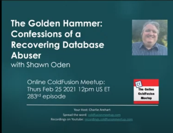 TOPIC DESCRIPTION: Early in my dev career, I often (unwittingly) abused my systems. My code didn't care about things like databases or networks, as long as the results were right. I had a cfHammer, and I needed to pound out a solution. I never knew I was an anti-pattern. ABOUT THE SPEAKER: I'm a code monkey who started life as a pilot. I've primarily worked in ColdFusion and SQL, with a smattering of pretty much whatever I've been asked to do. I'm a self-taught guy, and I constantly find new, shiny things that I want to learn more about. I've been doing both the coder and the SQLer things for a while. I know a thing or two. At least I hope I do. Presented at Online ColdFusion Meetup #283 (Feb 2021) https://www.youtube.com/watch?v=tq2t6ulM4hY&list=PLG2EHzEbhy0-QirMKgSxhjkUyTSSTvHjL&index=13