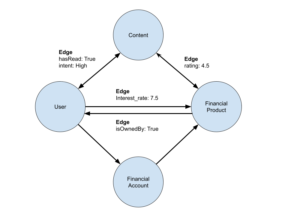 - Common entities referenced throughout the graph, enriched with relationship-specific data via edges.