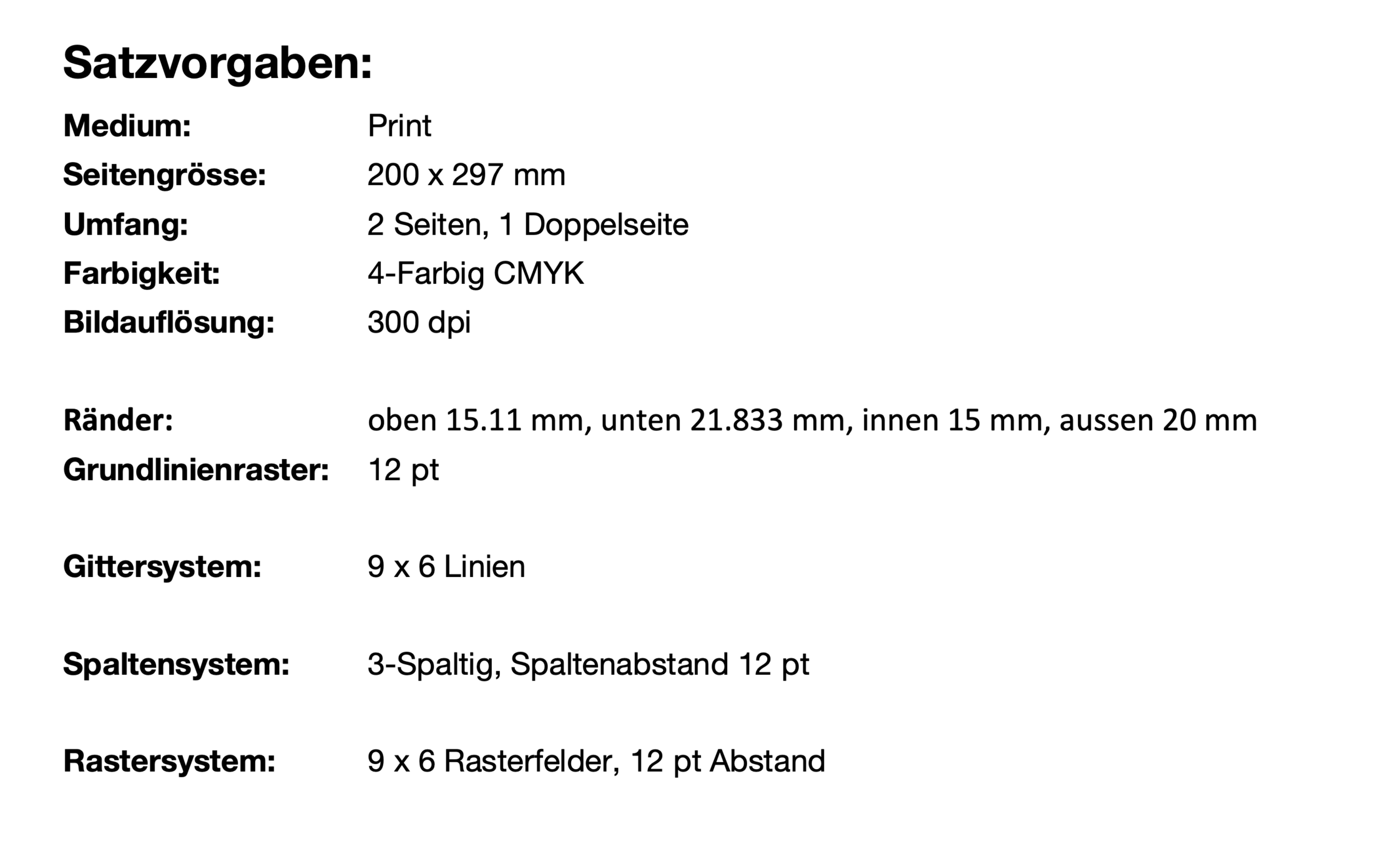 Die Lernenden können ohne Hilfsmittel die wichtigsten Begriffe und Bestandteile eines Layouts (Satzspiegel, Spalten, Spaltenabstand, Grundlinienraster, Anschnitt) korrekt und vollständig erklären.